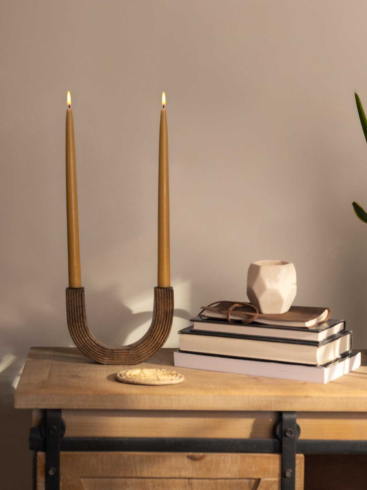 We love the Arc Wooden Candle Holder from Village Artisan! Hand-carved from solid mango wood. this curved U-shaped candle holder features subtle etched lines that follow its graceful arc. adding texture and visual interest. Designed to hold two candles. one at each end. it creates a balanced. modern silhouette that works beautifully in everyday settings or styled for special occasions. Its medium brown wood tone complements modern. rustic. and contemporary interiors alike.