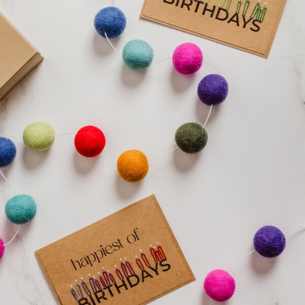 Brighten your d??cor with the Colorful Pom Pom Garland. handcrafted from 100% sheep’s wool. Strung together with cotton thread. this 5-foot garland features vibrant felt balls in a rainbow of festive colors??perfect for draping across a mantle. wrapping around a tree. or adding playful cheer to any room. Handmade with care. this garland is as versatile as it is joyful. bringing a pop of color and artisanal charm to your celebrations.