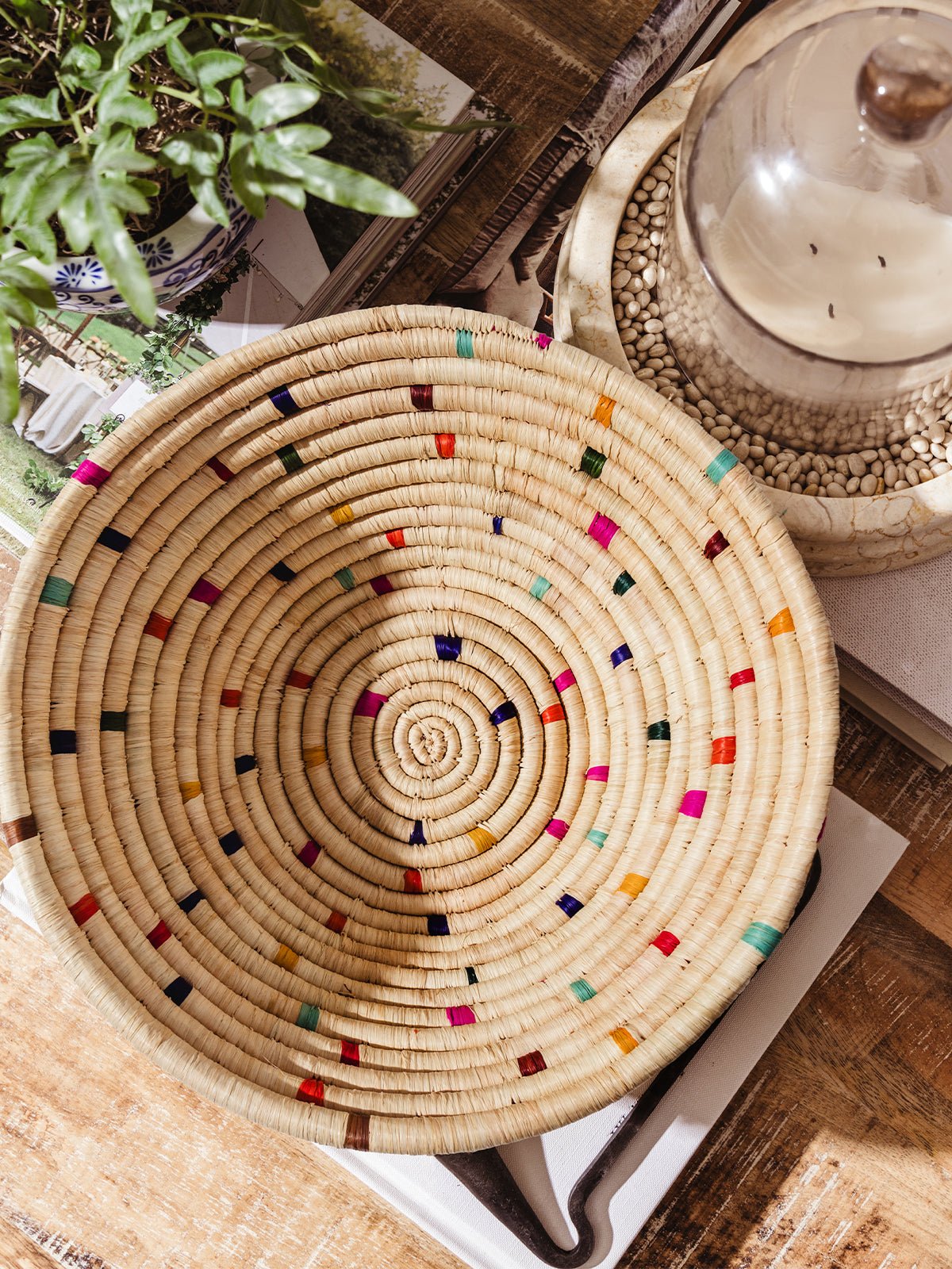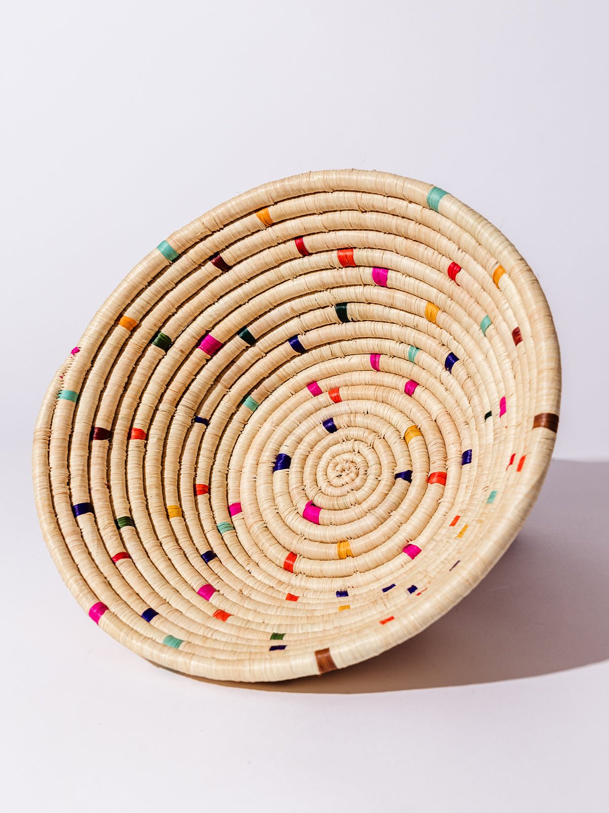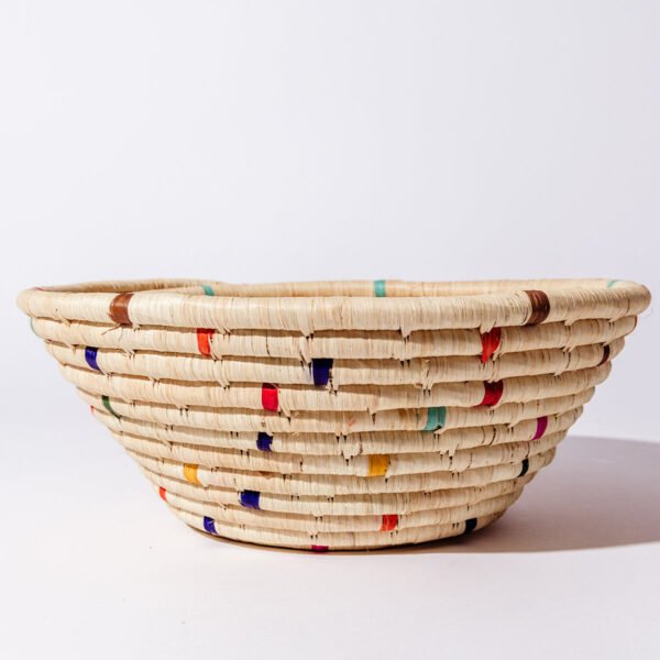 The Faith Woven Basket in Confetti is a joyful expression of craftsmanship and color. This vibrant basket is handwoven in Uganda using natural grasses. banana fibers. sisal straw. and other locally sourced materials. With playful pops of color and an organic texture. it adds beauty and meaning to any space. whether hung on the wall or used as a tabletop fruit basket. Each basket is a celebration of hope. creativity. and opportunity. supporting women artisans through dignified