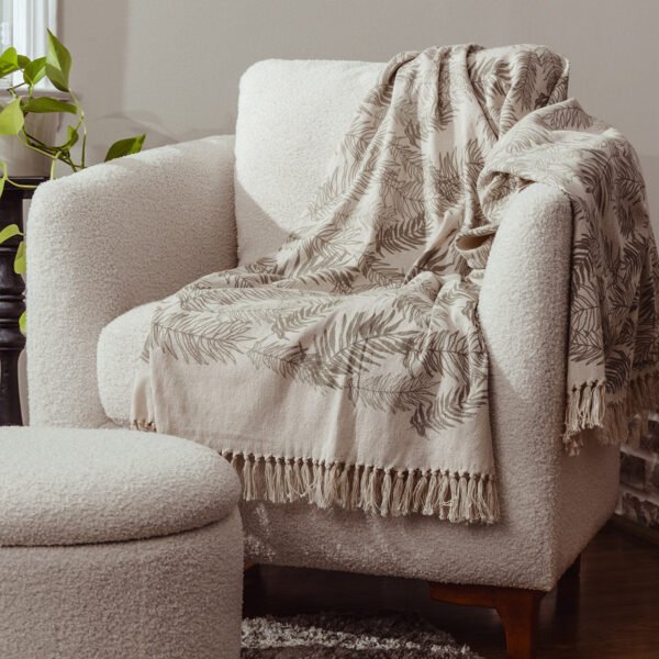 Wrap yourself in timeless comfort with our Handwoven Botanical Throw Blanket. Crafted from natural cotton and handwoven in Kenya. this cozy throw features a neutral background with a calming sage gray fern print. Its lightweight design makes it versatile??perfect as a decorative couch accent. a warm evening cover-up. or stylish shawl. With soft fringe details and artisan craftsmanship. this blanket brings beauty and meaning to your home.