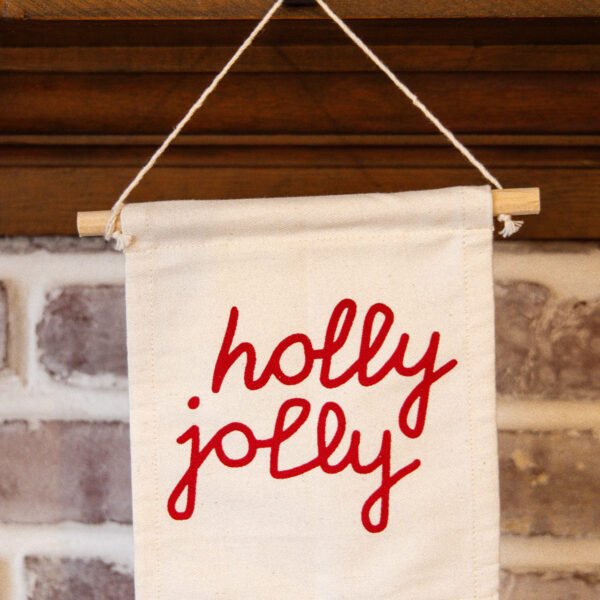 Spread festive cheer with the Holly Jolly Christmas Canvas Wall Art. Hand-sewn and screen-printed by Kenyan artisans. this wall flag pairs natural canvas with bold red lettering for a joyful holiday accent. Its compact size makes it perfect for walls. doors. or gallery displays??adding a handmade. meaningful touch to your Christmas d??cor.